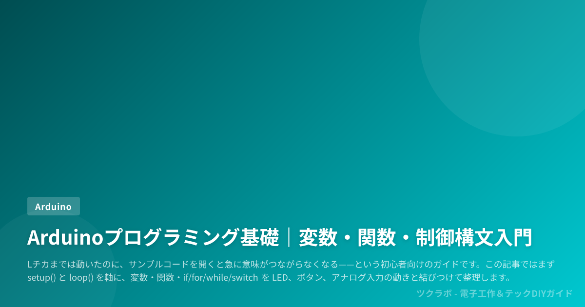 この記事ではまず setup() と loop() を軸に、変数・関数・if/for/while/switch を LED、ボタン、アナログ入力の動きと結びつけて整理します。