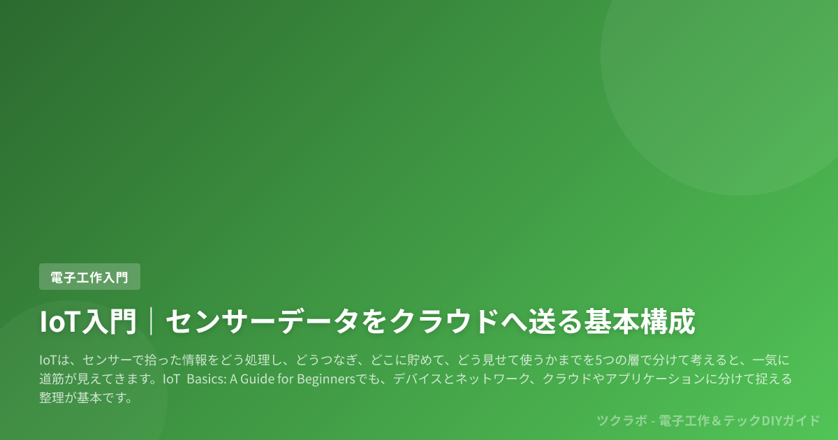 IoTは、センサー、処理、通信、クラウド入口、保存・可視化という5層で分けて考えると、何を決めれば前に進むのかが見えます。