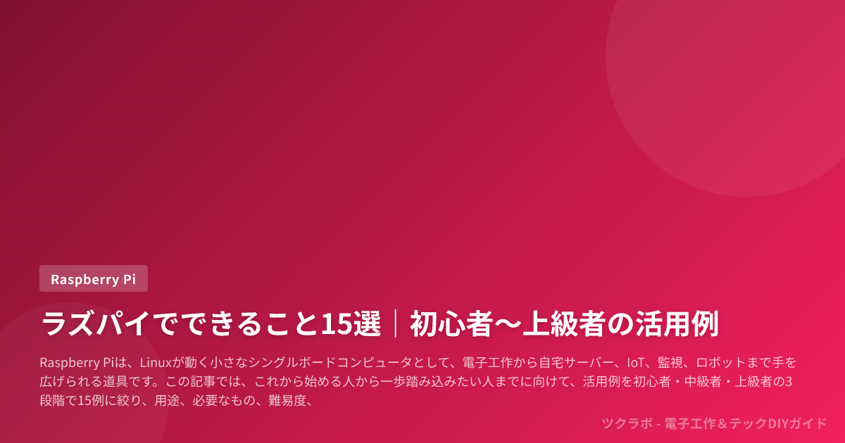 Raspberry Piは、Linuxが動く小さなシングルボードコンピュータとして、電子工作から自宅サーバー、IoT、監視、ロボットまで手を広げられる道具です。