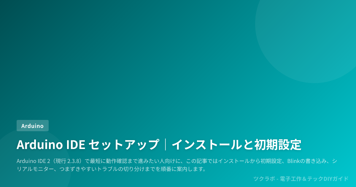 Arduino IDE 2(現行 2.3.8)で最短に動作確認まで進みたい人向けに、この記事ではインストールから初期設定、Blinkの書き込み、シリアルモニター、つまずきやすいトラブルの切り分けまでを順番に案内します。